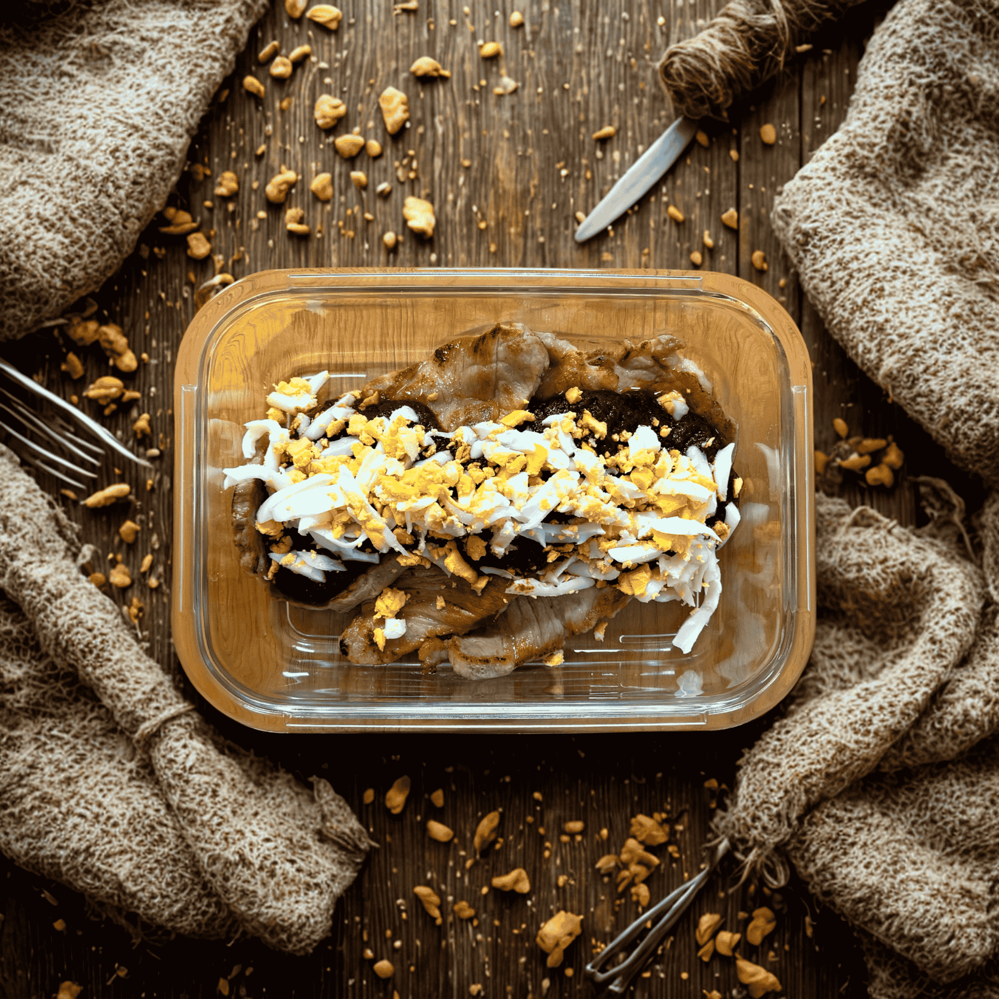 Calorías: 610 kcal - Proteínas: 38 g - Grasas: 32 g - Carbohidratos 20 g |